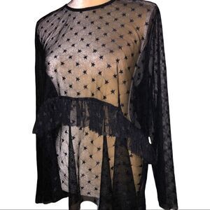 This is super sexy! Black lace , sheer with diamond design and layers of lace. 24” pit to pit