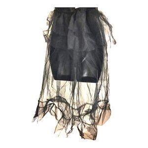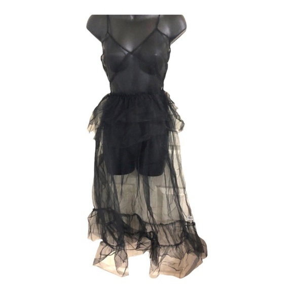Black sheer mesh chiffon tulle peplum goth tutu v-neck dress size medium new