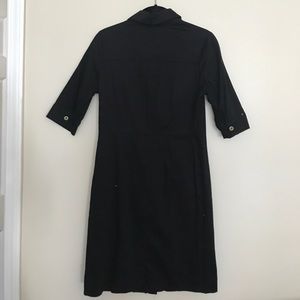 This dress is perfect for work or cute with sneakers. Gold buttons all the way down and detailing on arms. 3/4 sleeves. This is a fitted style. 96% Cotton, 4% spandex. Falls right above the knees