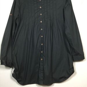 Excellent condition mini/midi (depending on height) dress or long shirt. Black with brown buttons. Pleat detail top front. WD - NY tag size Large. 95% cotton, 5% spandex, stretchy. Sleeve have button so can roll up sleeve.