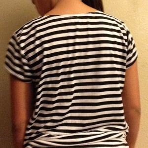 Black shirt with Black and white striped cardigan