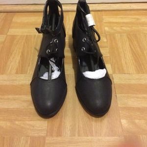 I'm selling these for a friend. She bought them from Urban Outfitters, never worn, size 7. The heel measures 2.5 inches. I think these are really cute, I love the lace up and the ankle tie, it's too bad they don't fit me.