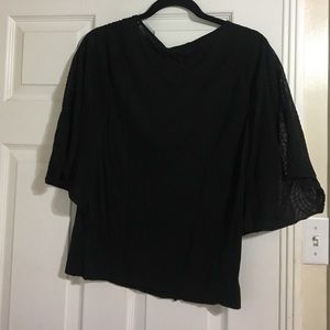 Black short sleeve tee with textured sleeves and detail on the collar and down the front.