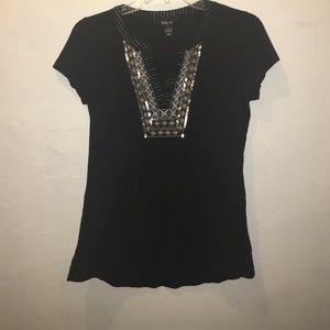 Black short sleeve top. Great fit, never worn, and lovely accents on the collar