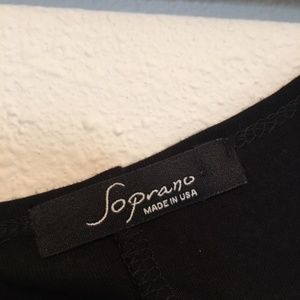 Soft black short sleeved top with bronze and gunmetal studded detail on the top and sides of the sleeves. has a scooped type neckline in the front and back and is a nice length and not too short. Size Medium.