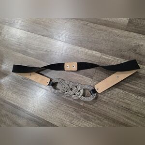 Black silver buckle 90s waist belt stretchy L/XL classy Lagenlook Whimsigoth y2k