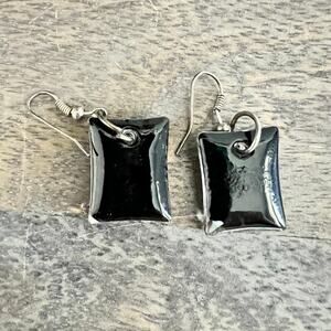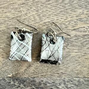 Black & silver patterned glass handmade ribbon matching necklace & earring set