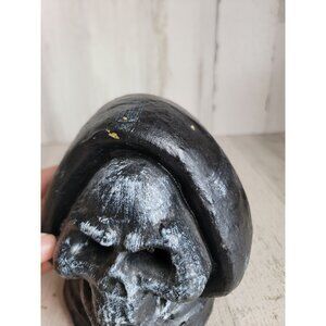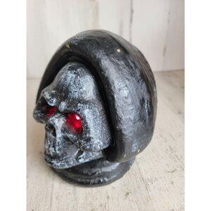 Black skeleton head red flashing eye Halloween vintage prop decor