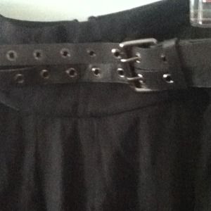 Black skirt with double strap belt. Sheer metarial on top of skirt. Nice dressy skirt. With zipper in the back