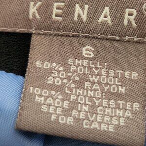 Black knee skirt with a slight flare at the bottom, featuring blue lining and an invisible zipper.