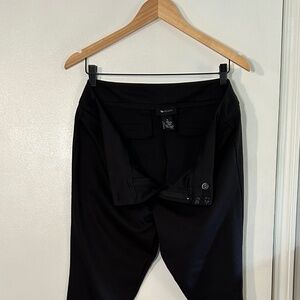 AB Studio black legging slacks with tapered ankle. Side and back mock welt pockets. Zipper with stacked double hook and interior button closure. Size 12. Inseam 30"