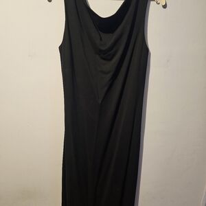 this listing is for this black sleeveless evening dress, made by the Spanner co. it has a scoop neck and is made from a black crepe fabric. it is a sz. sm.