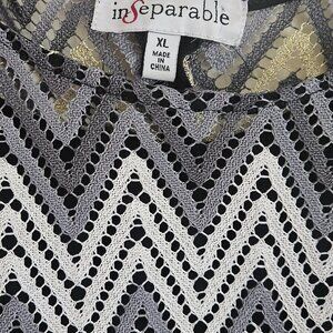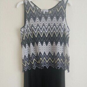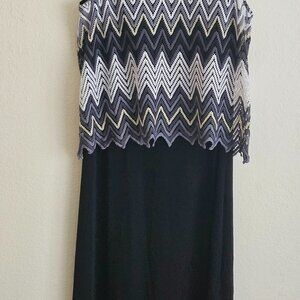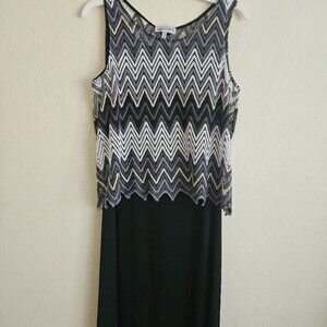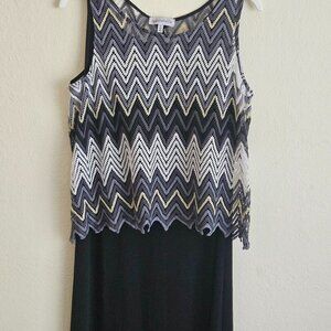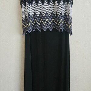 Black sleeveless maxi dress Party Cruise Chevron Stripes Knit crochet overlay XL
