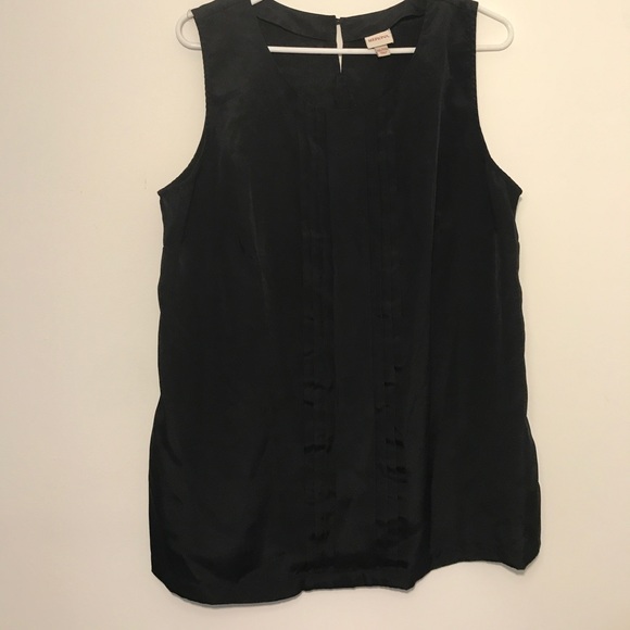 Black sleeveless top with pleated front detail