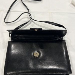 Black snap closure clutch/shoulder bag. Leather. Talbots.