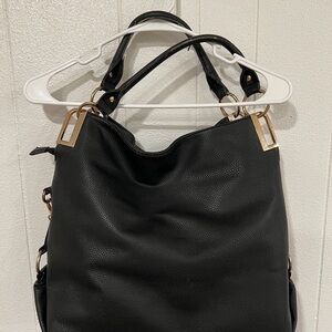 Black soft pebbled vegan leather blinged out hobo bag LARGE with gold hardware