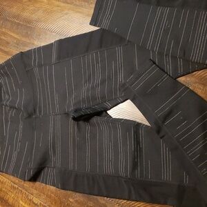never worn size small. black space dyed leggings. side thigh pockets with sheer black panel legs. waist inside pocket.