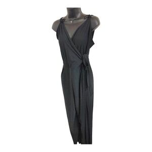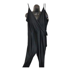 Black knit spaghetti strap v-neck waist tie slouchy sleeveless plus size jumpsuit size 3X brand new