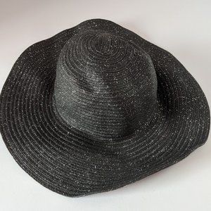 Black sparkle floppy beach hat, black with silver sparkly specks throughout, good condition.