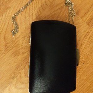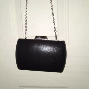 Cute black purse! It sparkles on the front and has a light sheen in the back. A silver chain is attached or can be hidden away for a clutch look.