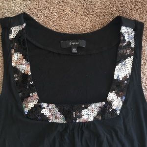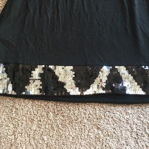 From Express. Black dress with sprinkle trim at the collar and hem. Good condition, only worn once.