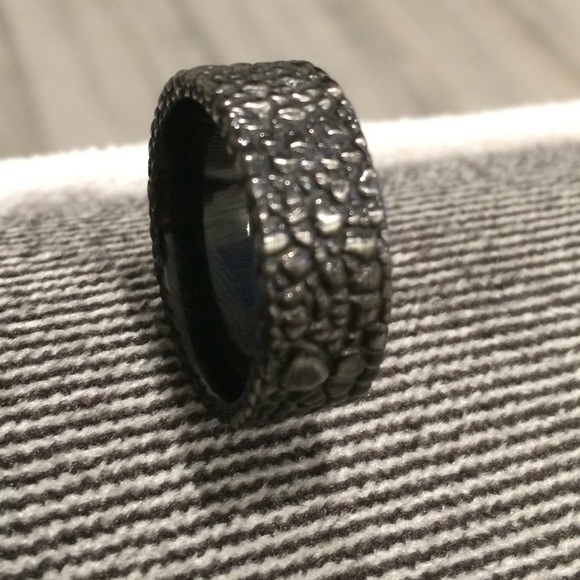 Black stainless steel ring with stone pattern