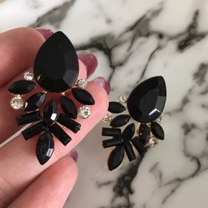 Black statement earrings with stimulated crystals and gold trim. They are quite Sturdy pieces. βno trades