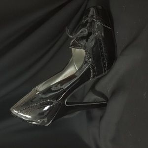 #11004 Black stiletto heels Cute shoelace design