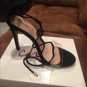 Black strappy heels. Brand new. Clear strap. US 8