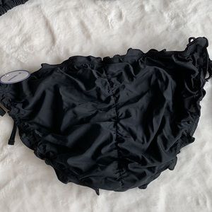 Bottom is size 14, top is size 12. Bottom is NWT. Top was worn 1x. Cute cinched detail on butt and top. Ruffled edges. Padded removable cups in top.
