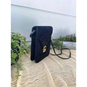 Black suede Frenchy of California bag leather crossbody retro square boxy gold
