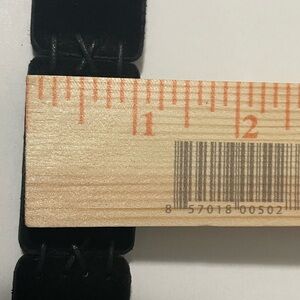 Black suede belt with brass buckle. size L. Suede rectangles sewn together.