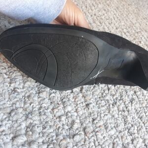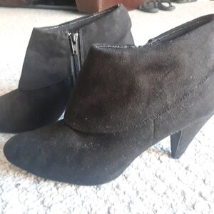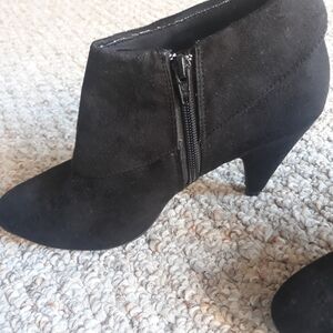 Super cute black suede booties. Pre-loved. Zipper opening. Perfect for fall