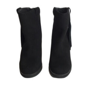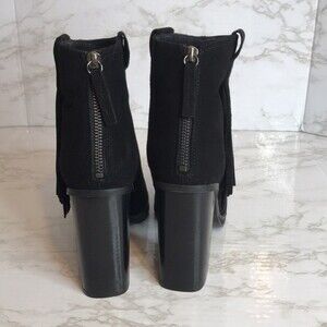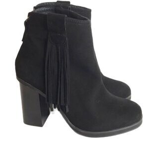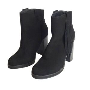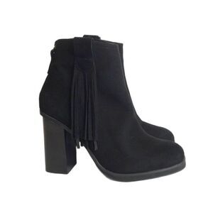 Black suede chunky ankle boots with fringe tassels made in Spain size 10