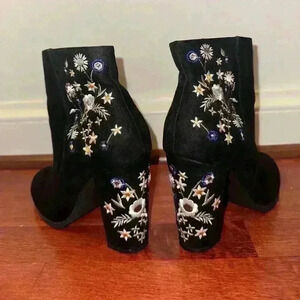 Black suede embroidered ankle booties, EU 40, US 9, French retailer