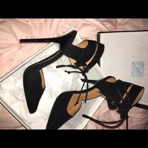 Brand new never worn black suede lace up heels. Reasonable offers accepted