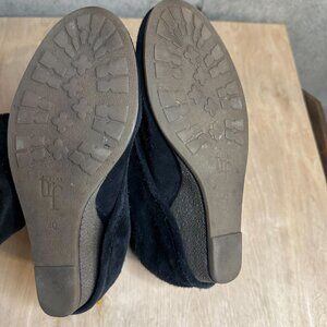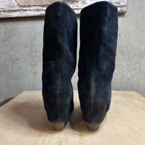 Black suede, mid-calf, wedge heel, straight or slouch boots, size 10