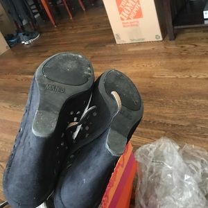 Black suede strap wedge good condition. Only worn 3 times. Very comfortable