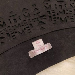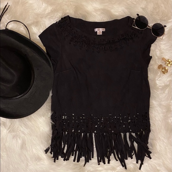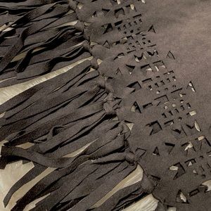 Price negotiable Black suede top with tassel fringe and geometric tribal pattern cutouts
