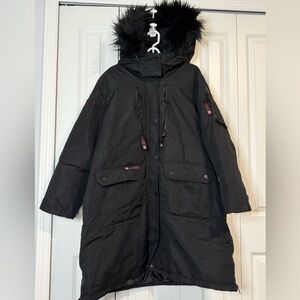 Canada Weathergear. Side zippers at the bottom for ventilation and mobility. SO MANY POCKETS. Removable zip on/off faux fur trim. Button and zipper closure. Never worn, no tags