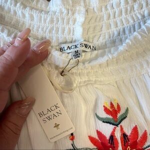Black swam Taryn white embroidered off the shoulder shift dress SZ MD