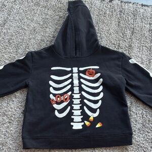 Carter's hoodie with skeleton design. Features white bones and orange accents. Perfect for Halloween. Clean, with no flaws.