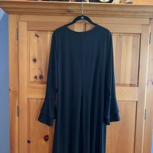 Black swing style lace up neckline dress. 93% poly, 8% spandex. Worn once or twice. Cute double ruffle cuffs.