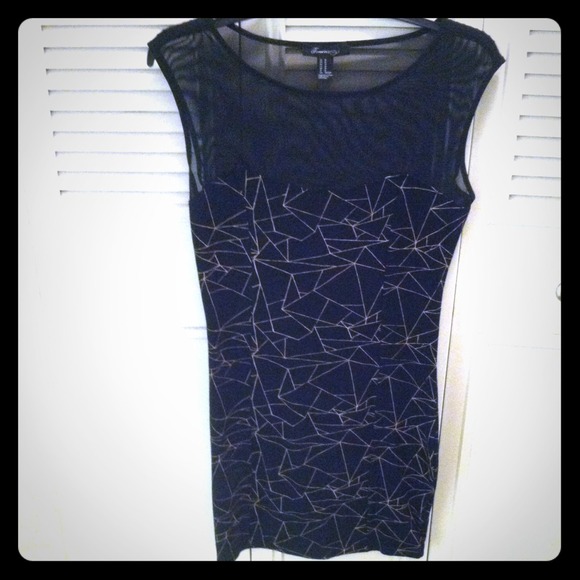 New with out tags...never worn! Black & taupe sleeveless mesh body-con abstract print dress. Slight sweetheart neckline.