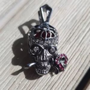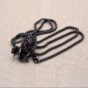 Black titanium and purple crystal skull rose goth punk pendant necklace new