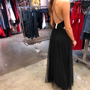 This deep v open black dress is gorgeous! My sister bought it for prom but last minute didn’t wear it. Never been worn and in great condition:) make offers below!