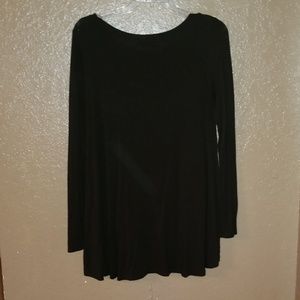 Cute black top that is longer in the back. This goes great with skinny jeans or leggings. Tag has been removed but it's a medium. Comes from a smoke free home.