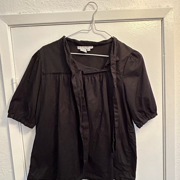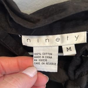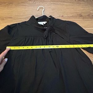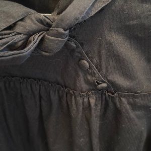 Pre-owned in fair-good condition. It has a cute 3- button detail and a tie to make a bow.