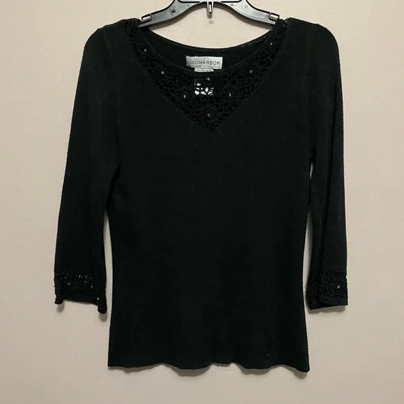 Ladies top with lace inserts, very pretty Ladies top with open lace on sleeves and around neckline