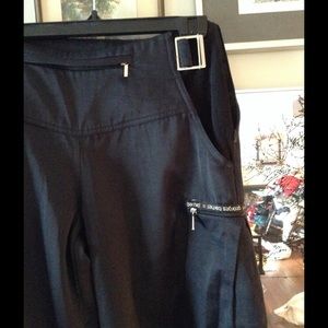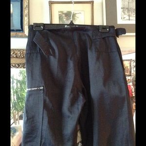 George's Barhelm black trouser with polar fleece bottom cuff -and Velcro tab to secure it - and pocket inserts, are great for chilly weather, wore them for après ski -,so comfy.love the zip pocket at front stash credit cards cash -side zip pocket can probably hold your cell ! Found These vintage pants in Paris.